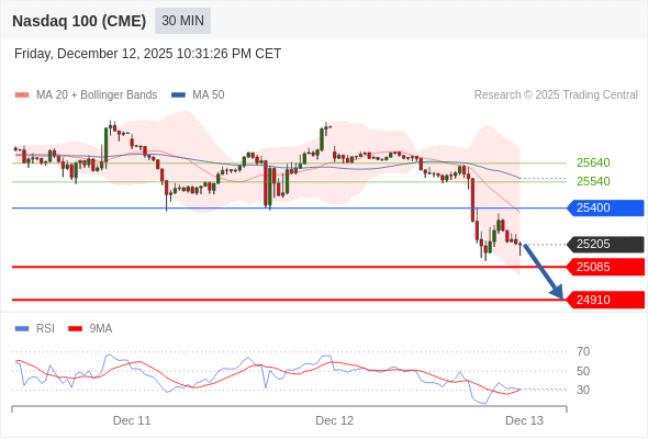 在 25400 之下,看跌,目标价位为 25085 ,然后为 24910 。