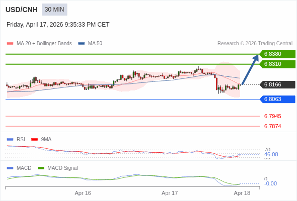 替代方案: 在6.8063以下,期待6.7945和6.7874。